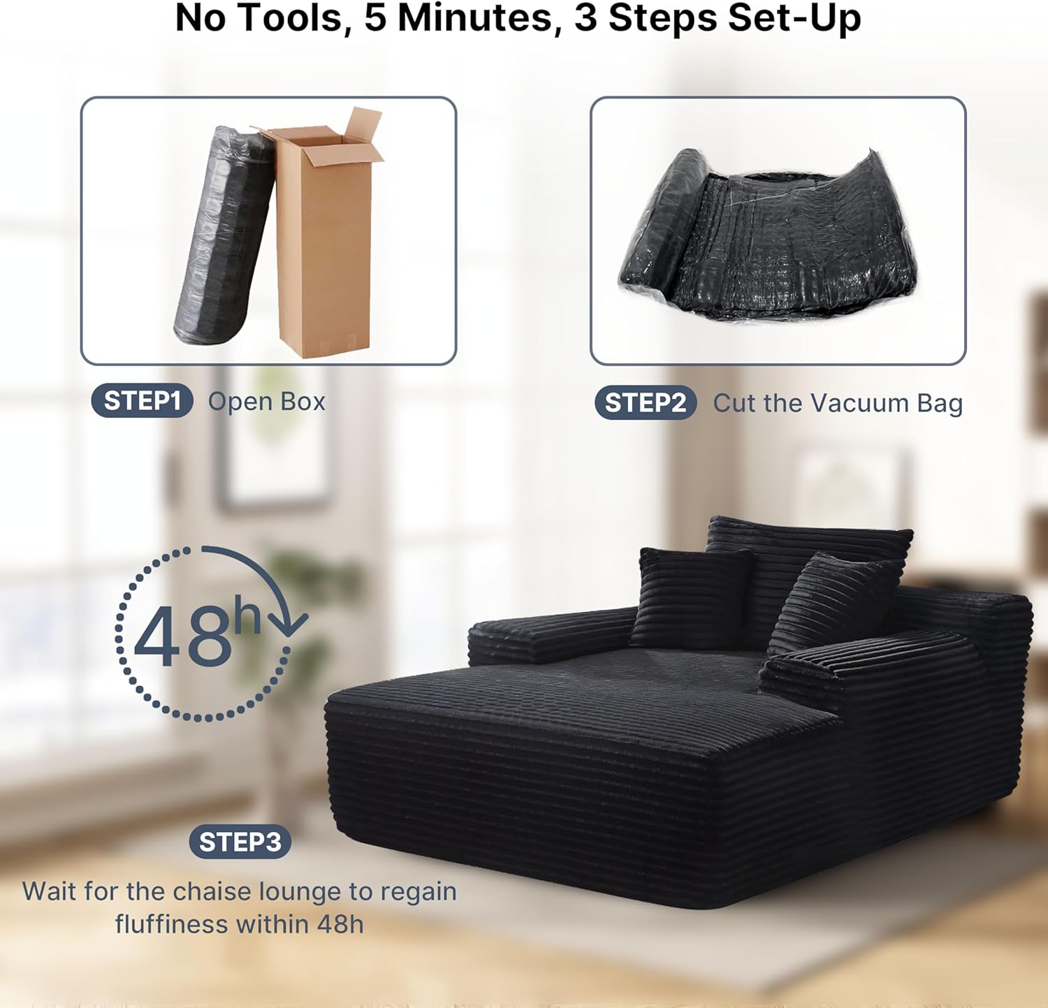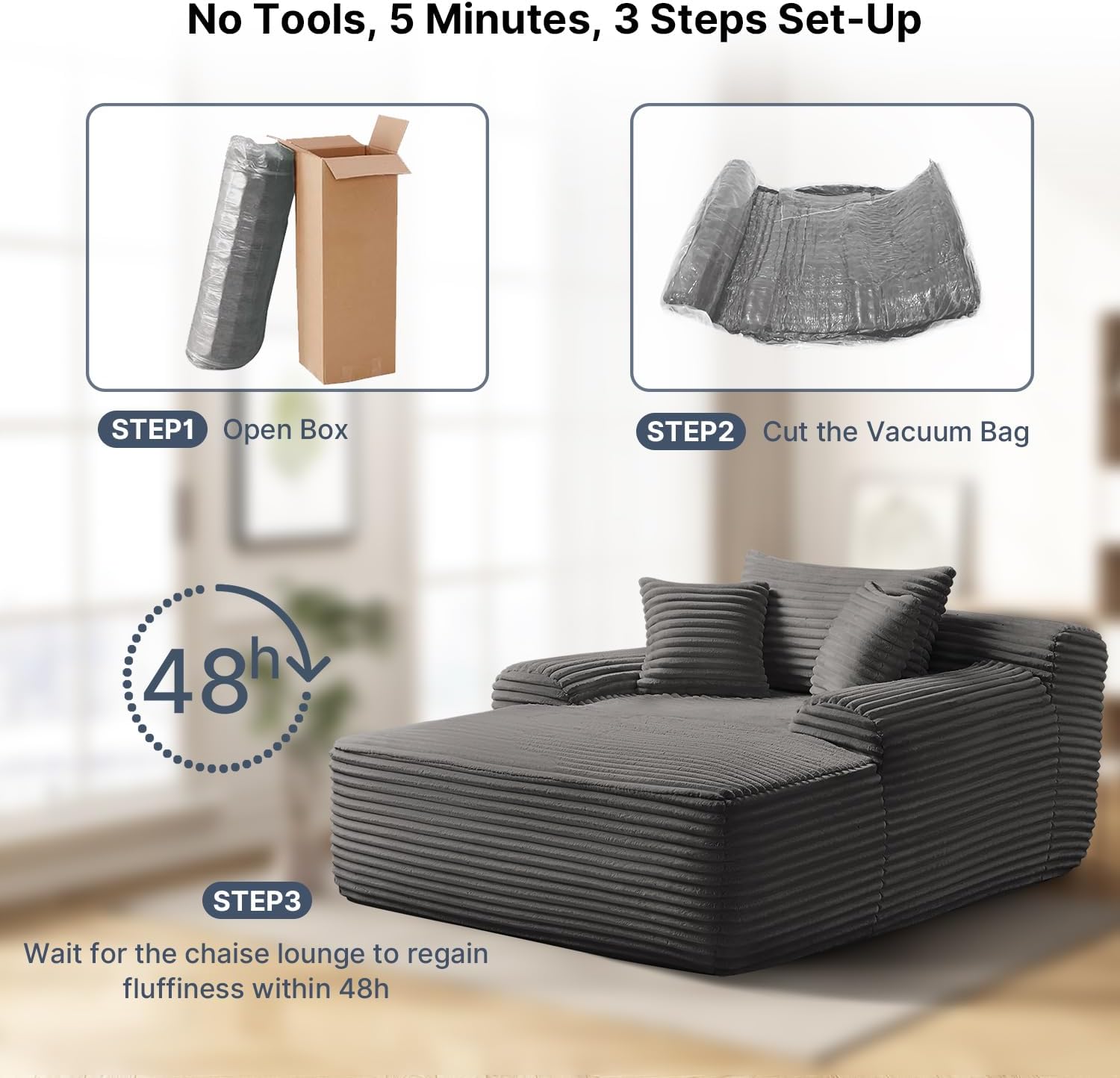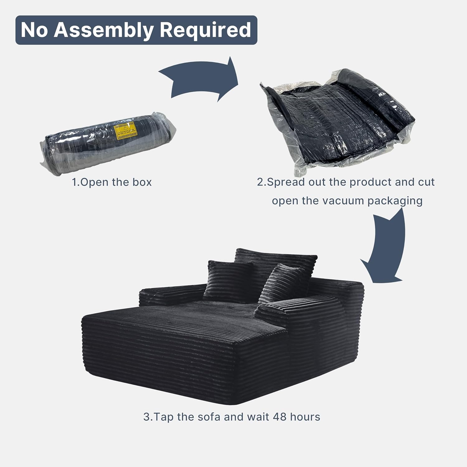 - 【No Assembly】No tools or assembly steps needed. Our loveseat uses vacuum compression. After unpacking, gently pat each part and let it rest for 48 hours to fully restore its original fluffy state.
