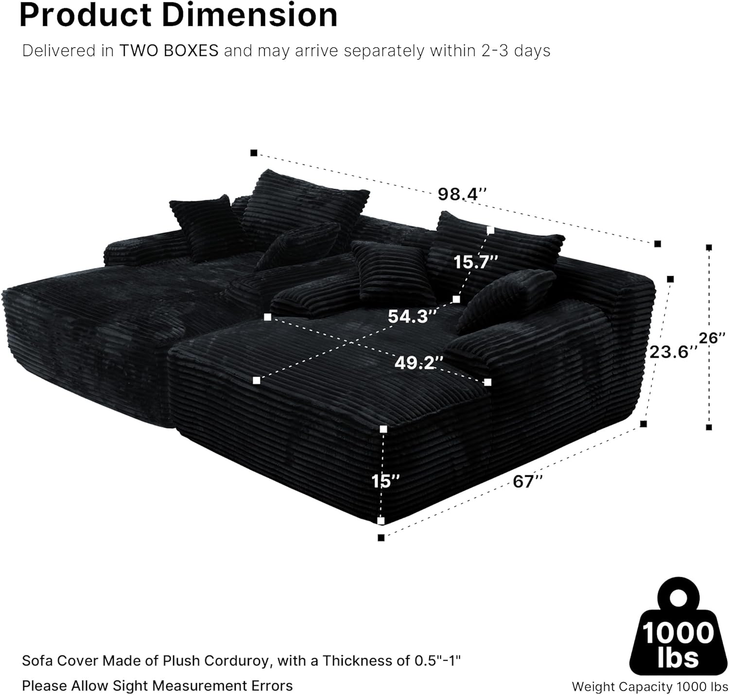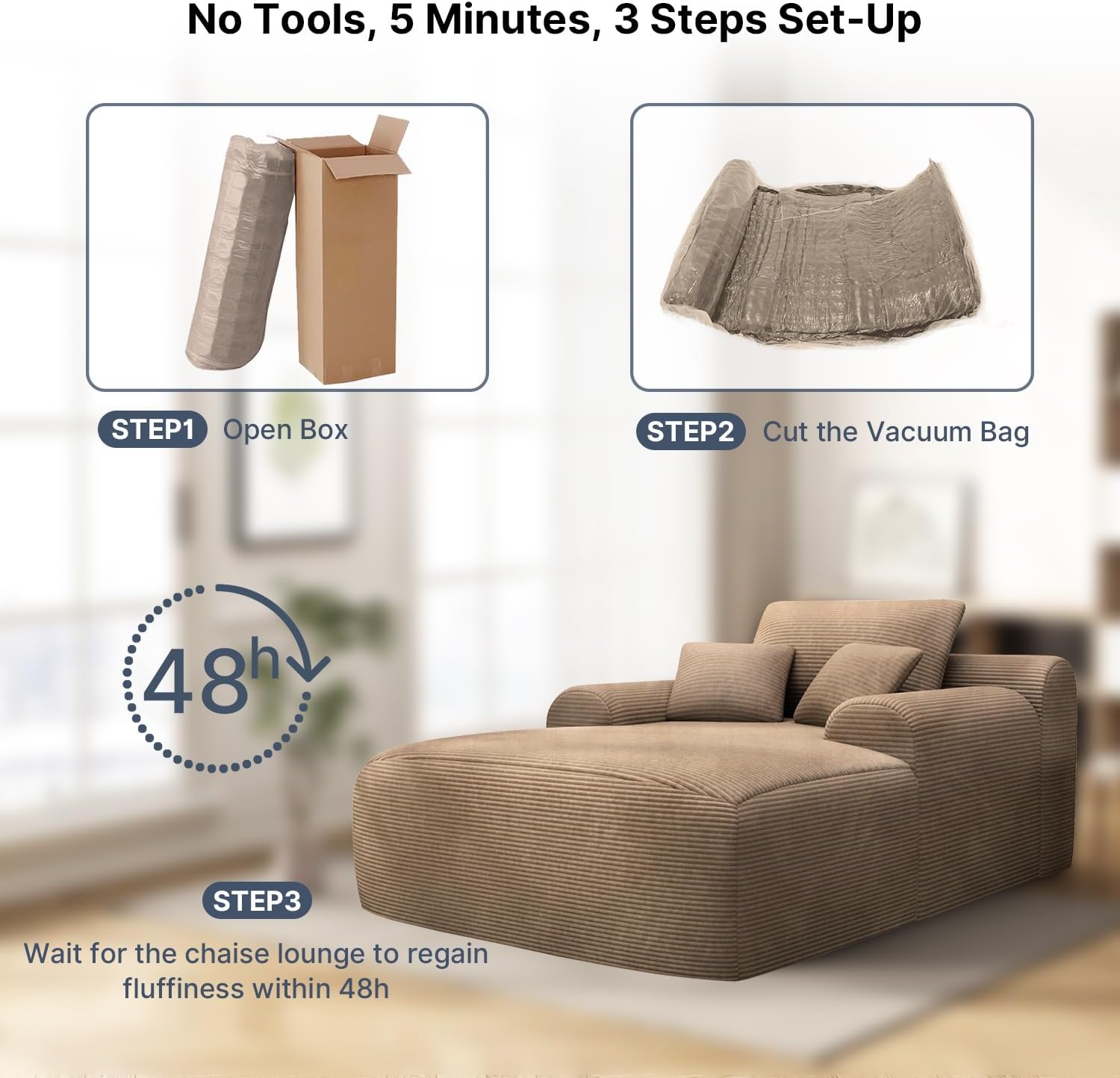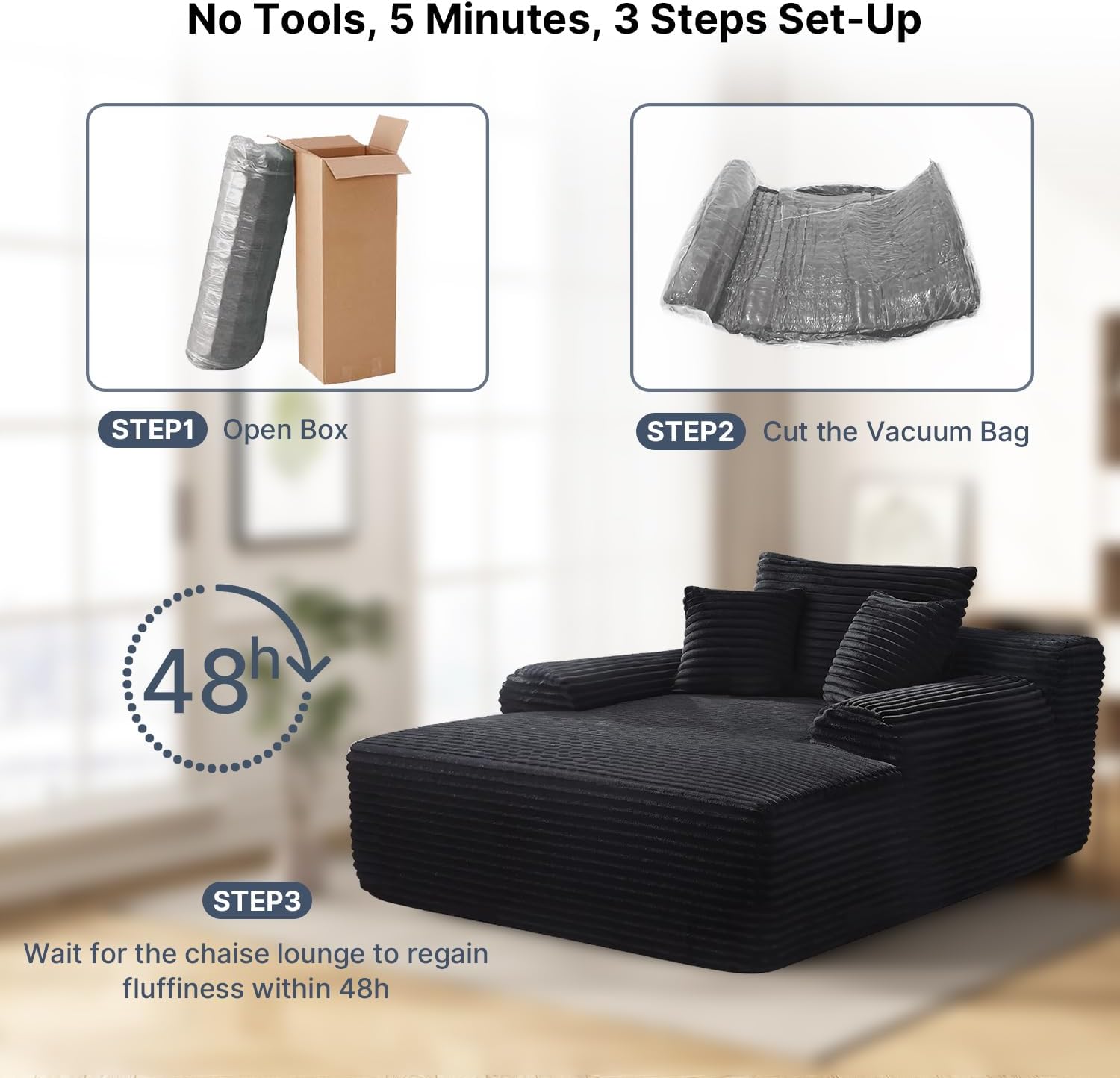 - 【No Assembly】No tools or assembly steps needed. Our loveseat uses vacuum compression. After unpacking, gently pat each part and let it rest for 48 hours to fully restore its original fluffy state.