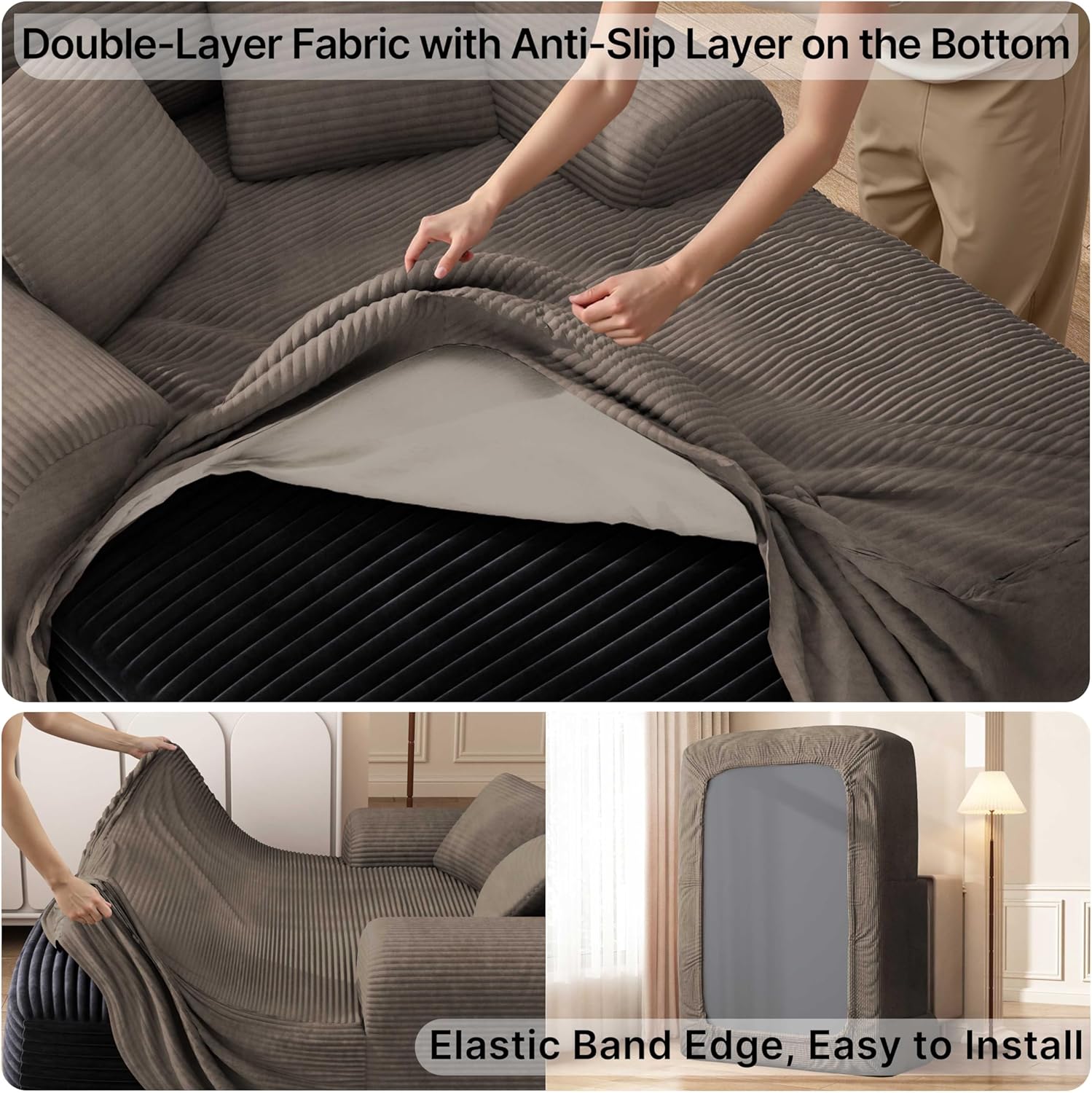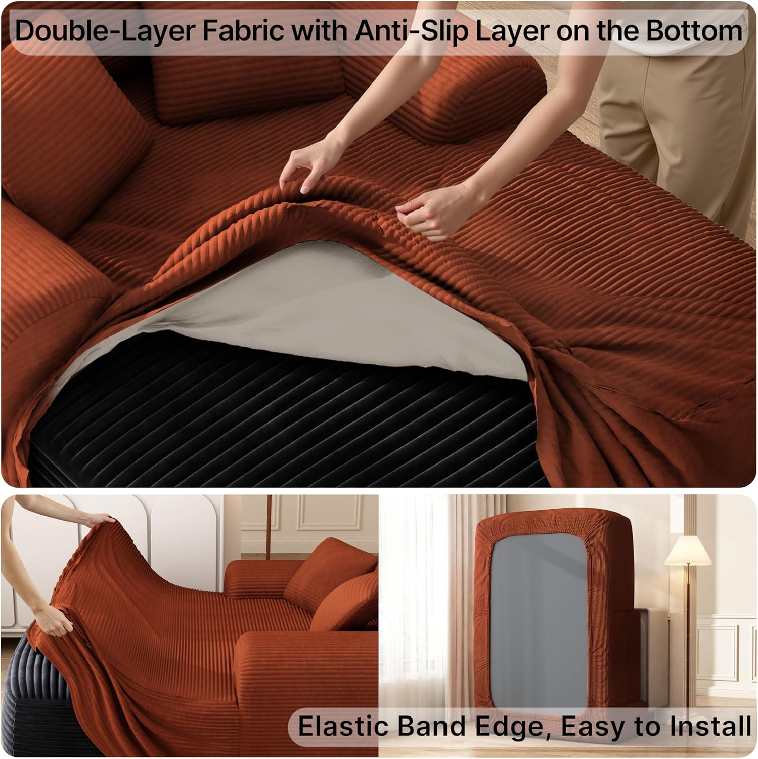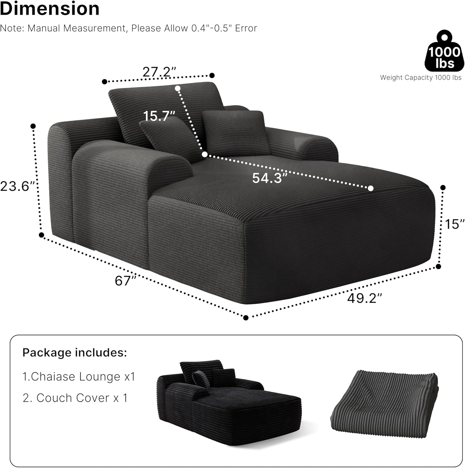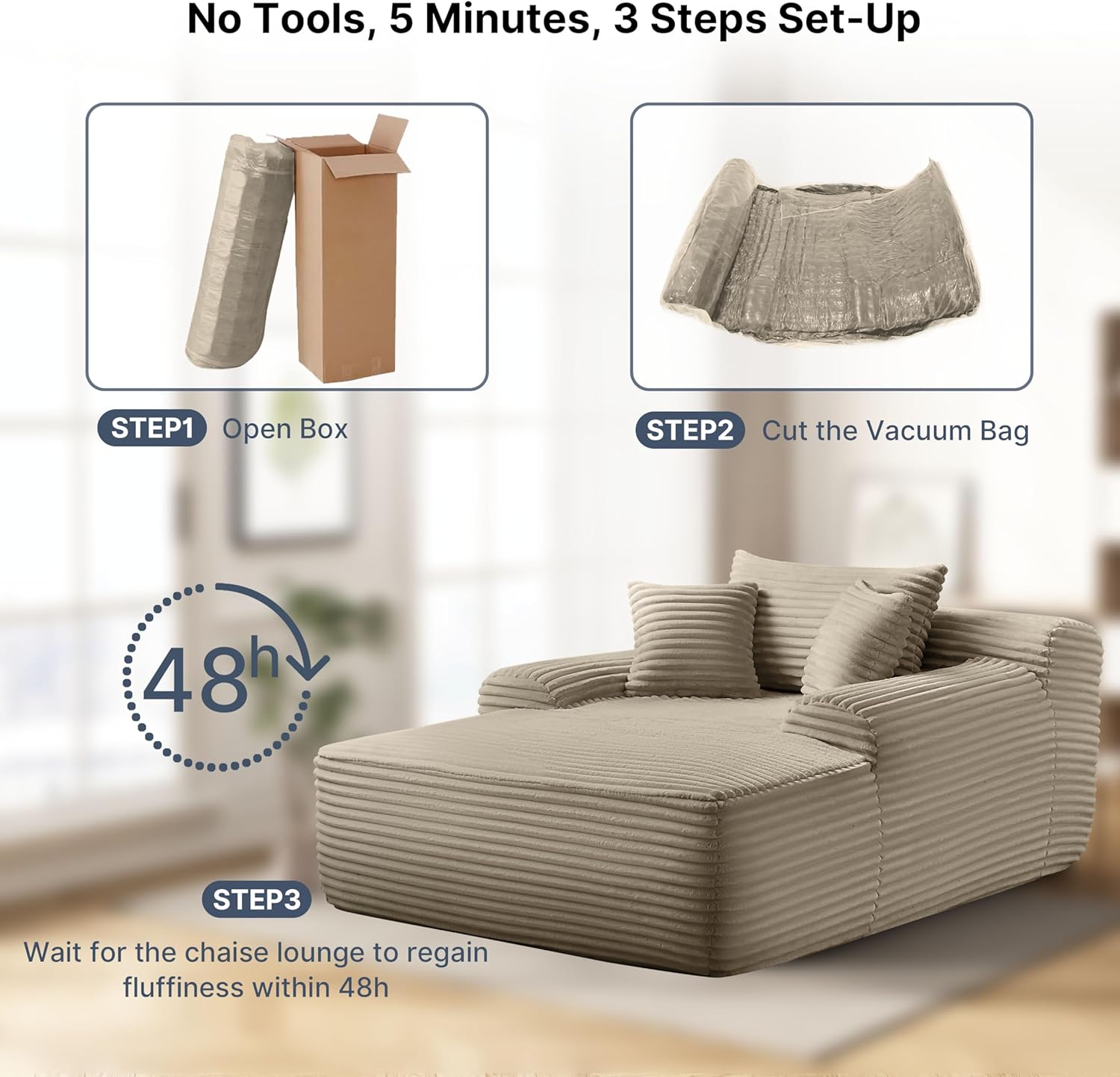 - 【Plush Corduroy Fabric】Oversized chaise lounge features skin-friendly, breathable corduroy fabric, offering a beautiful sheen along with an exceptional tactile experience, providing a more comfortable sitting and reclining experience.