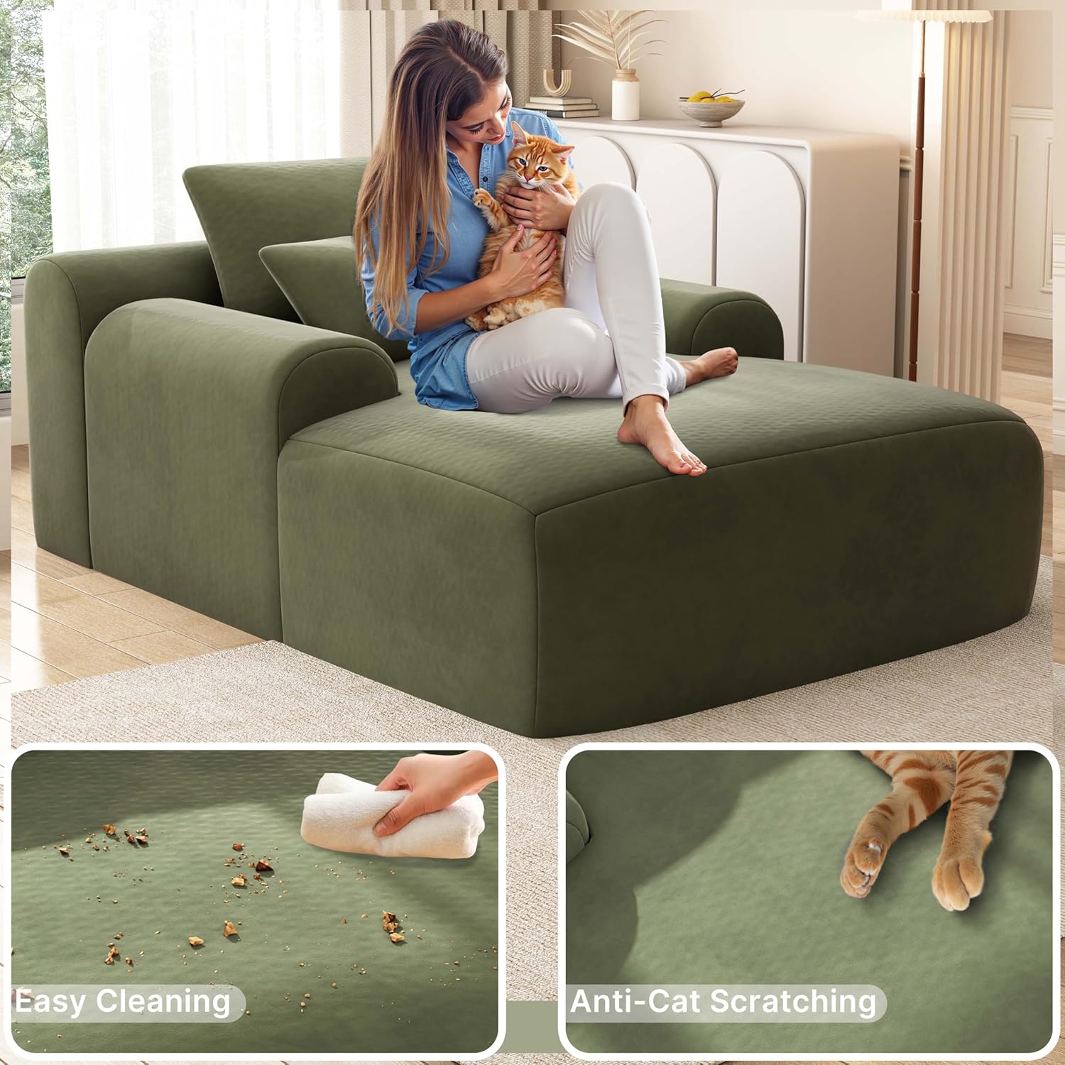 - 【Ergonomic Design】The sofas for living room come with a backrest pillow and two throw pillows, providing comfortable lumbar and back support. Upgraded 11-inch curved armrests enhance arm comfort. High-density foam perfectly conforms to body curves, disperses pressure points, and softly envelops the body ensuring complete relaxation.