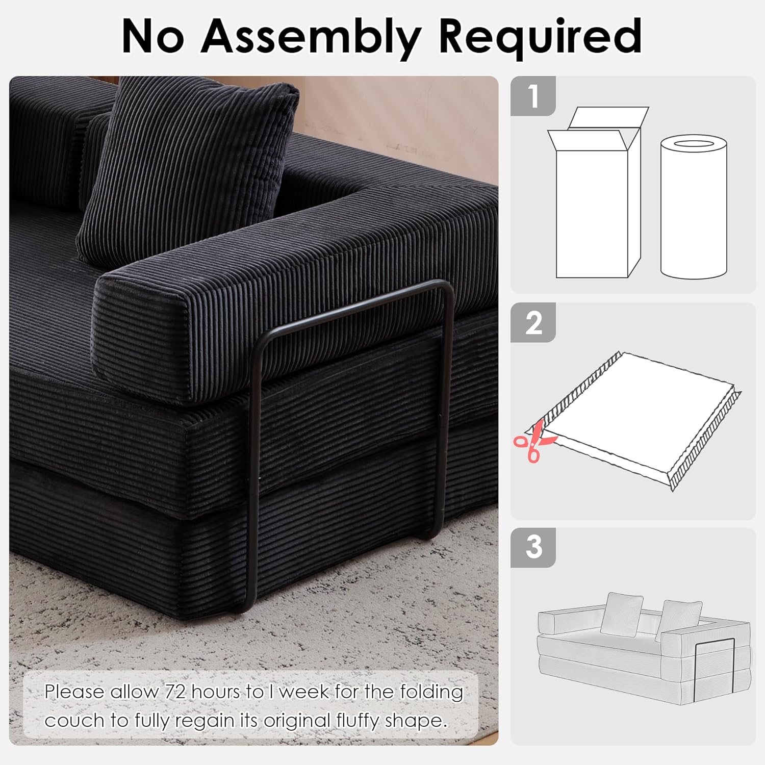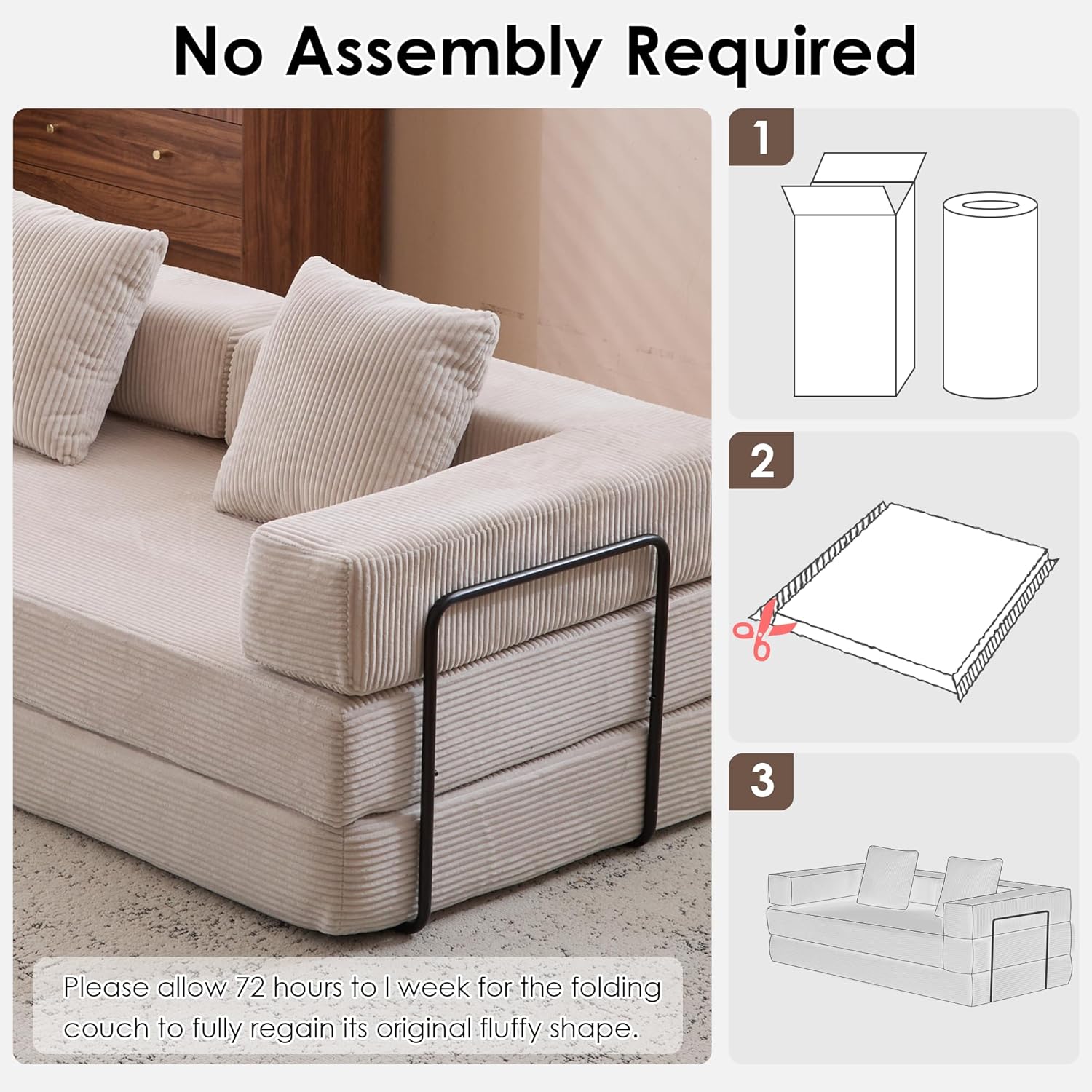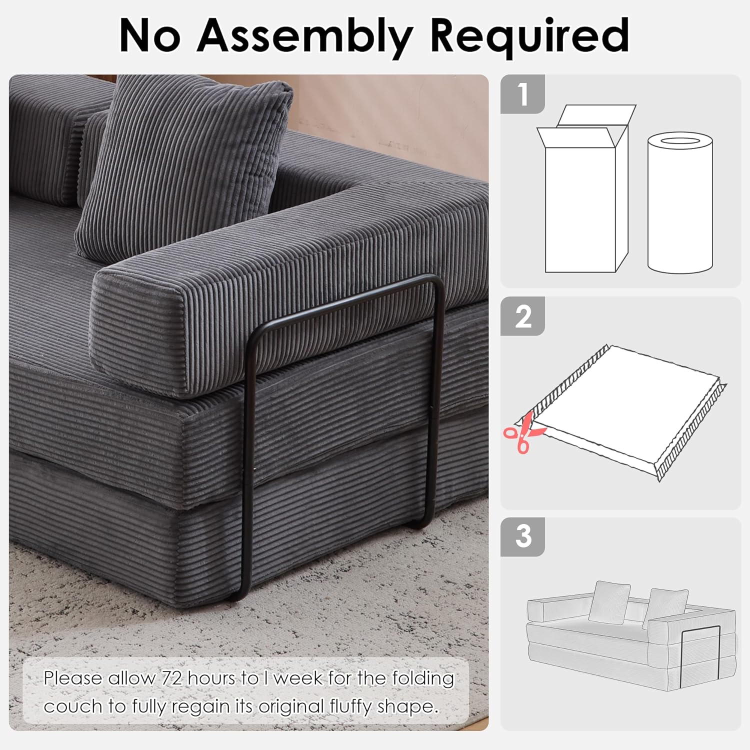 - 𝑵𝒐 𝑨𝒔𝒔𝒆𝒎𝒃𝒍𝒚 𝑹𝒆𝒒𝒖𝒊𝒓𝒆𝒅 & 𝑰𝒏𝒔𝒕𝒂𝒏𝒕 𝑼𝒔𝒆 - Skip the hassle of complex setup! This compression sofa arrives fully assembled—simply unfold and relax. Whether you're rearranging your space or accommodating guests, its ready-to-use design ensures effortless convenience from the moment it arrives.