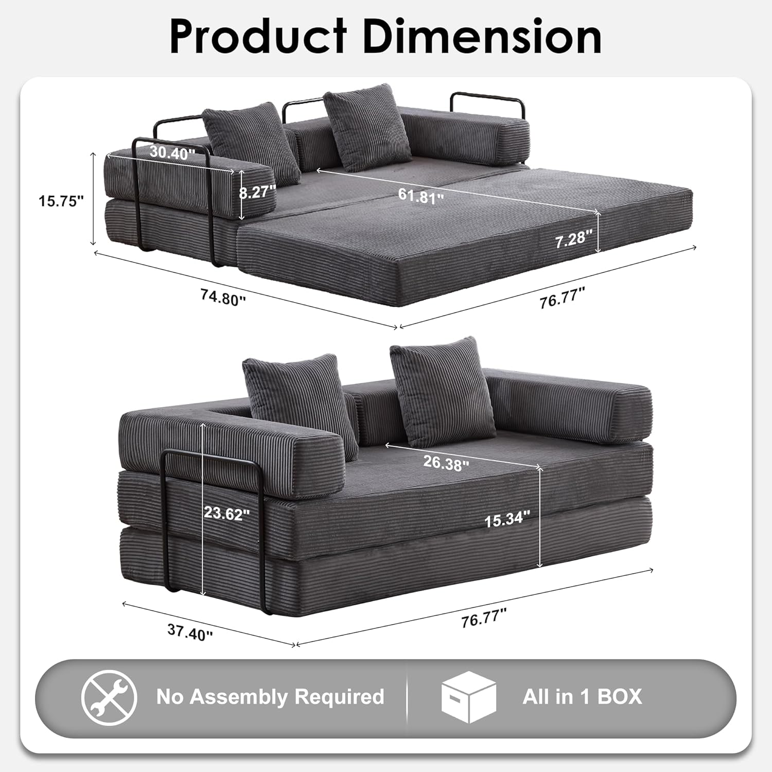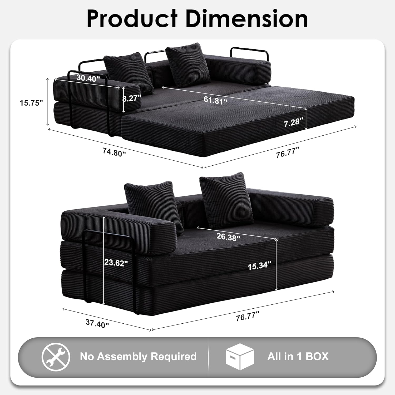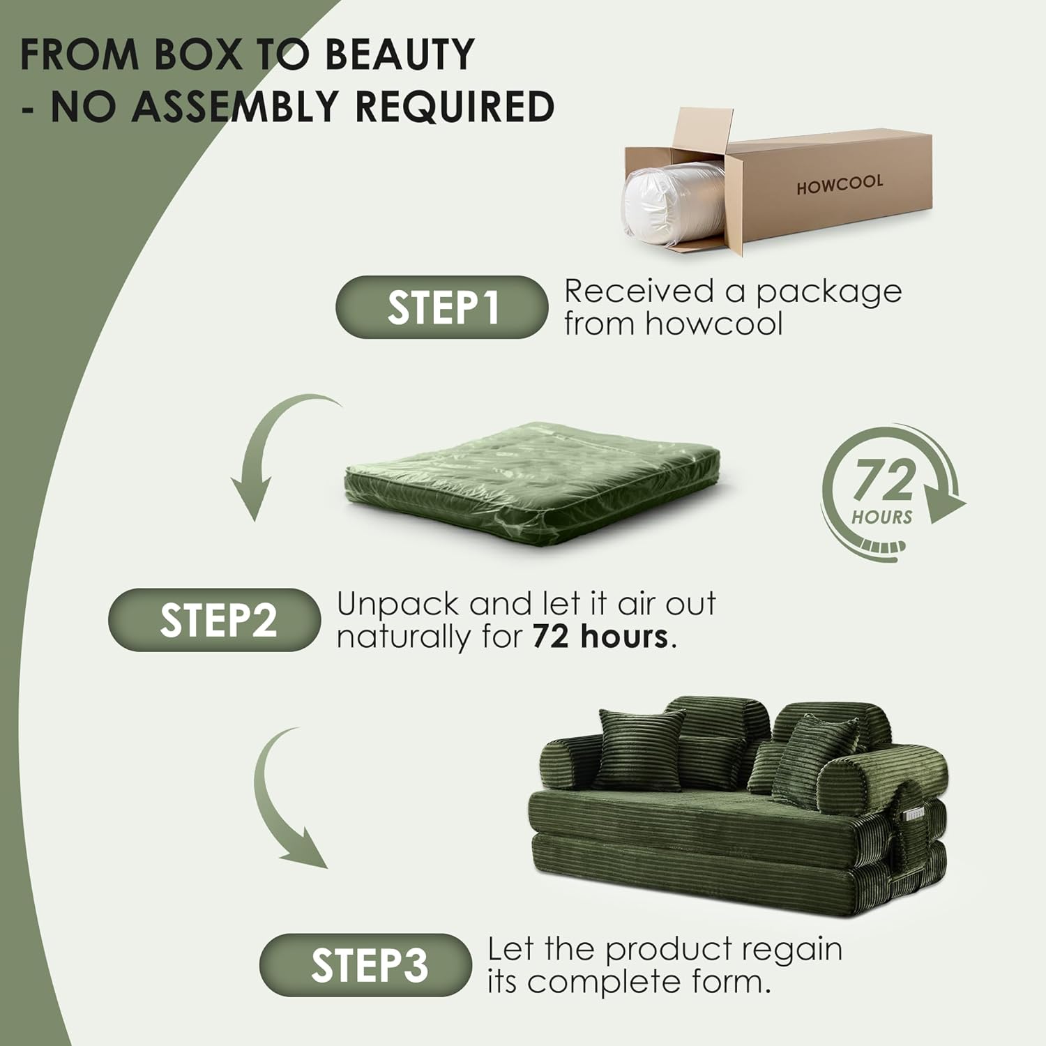- 𝑵𝒐 𝑨𝒔𝒔𝒆𝒎𝒃𝒍𝒚 𝑹𝒆𝒒𝒖𝒊𝒓𝒆𝒅 & 𝑰𝒏𝒔𝒕𝒂𝒏𝒕 𝑼𝒔𝒆 - Skip the hassle of complex setup! This compression sofa arrives fully assembled—simply unfold and relax. Whether you're rearranging your space or accommodating guests, its ready-to-use design ensures effortless convenience from the moment it arrives.