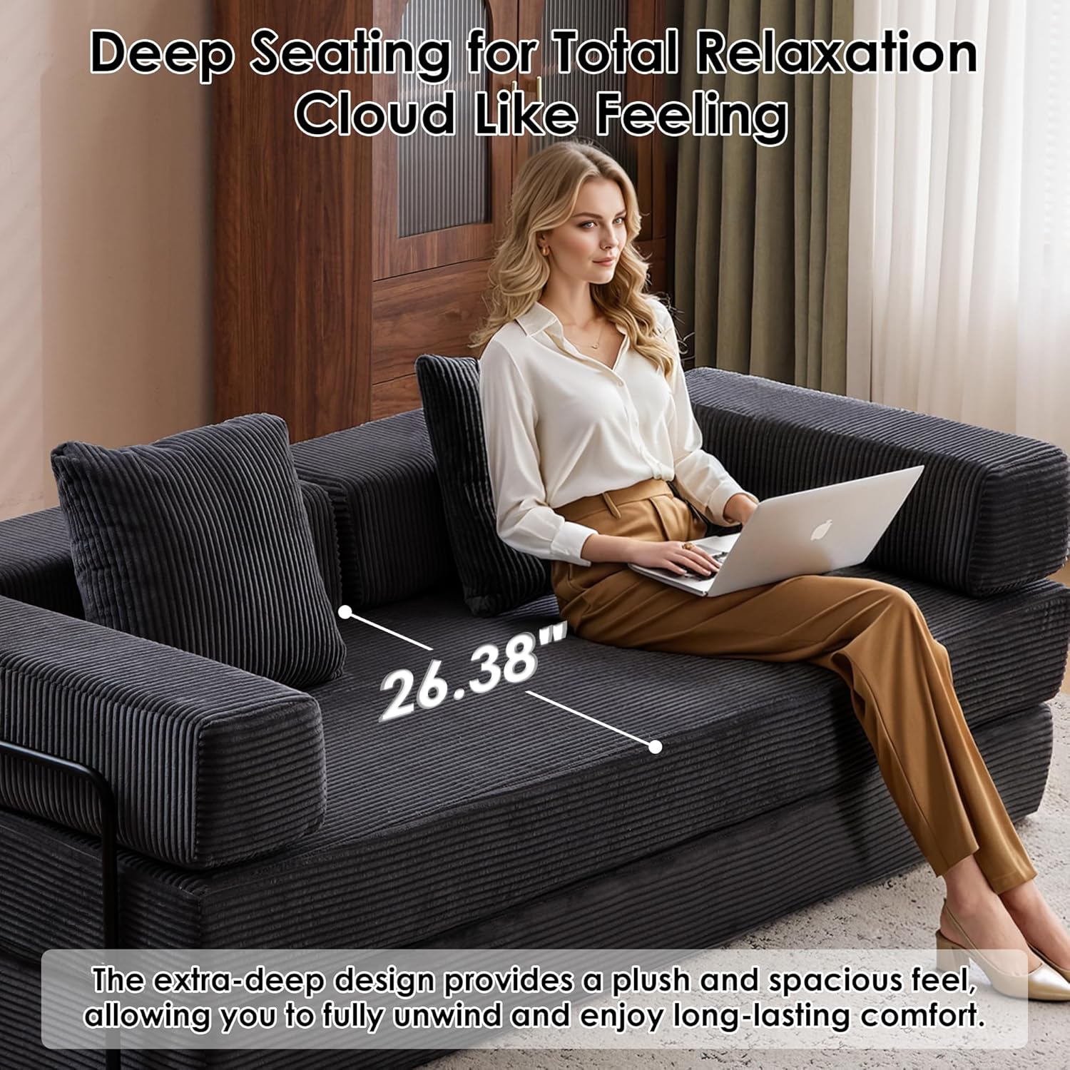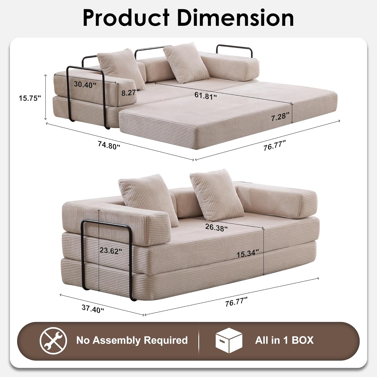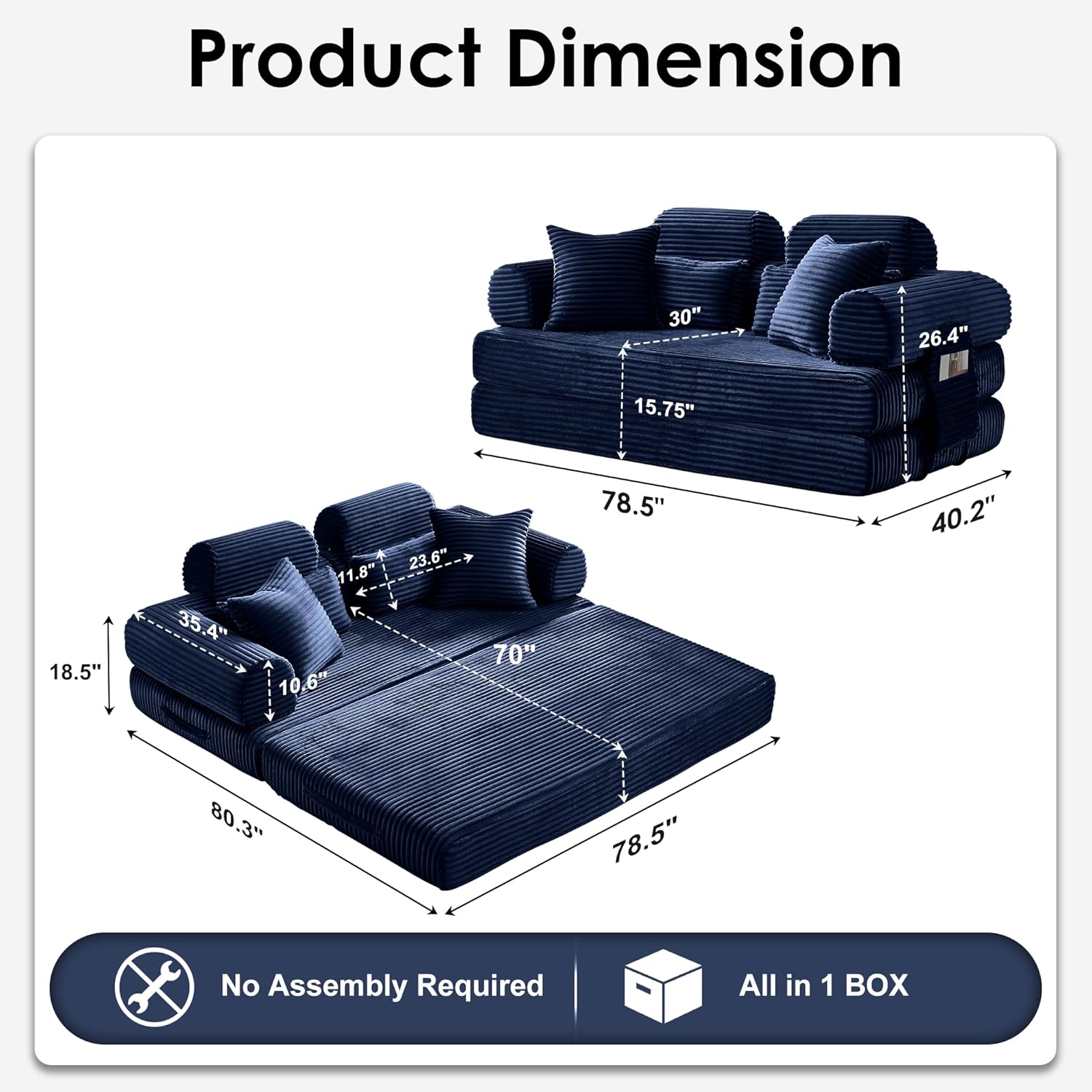 Convertible Sleeper Sofa Bed, 78.5" Corduroy Foldable Loveseat Sofa